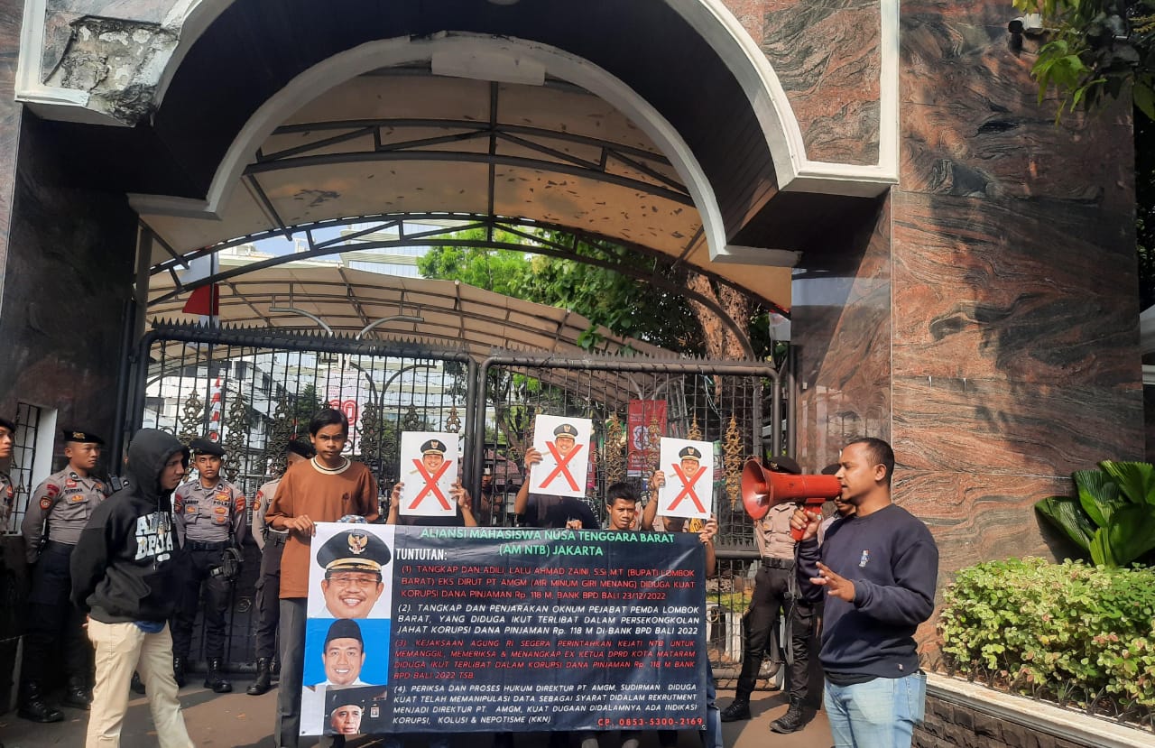 JAKARTA – Puluhan mahasiswa yang tergabung dalam Aliansi Mahasiswa Nusa Tenggara Barat (AM NTB) Jakarta menggelar aksi demonstrasi di depan Kejaksaan Agung (Kejagung) RI pada Rabu, 6 Agustus 2025. Mereka menuntut Kejagung untuk segera mengusut tuntas dugaan korupsi yang melibatkan Lalu Ahmad Zaini, yang saat ini menjabat sebagai Bupati Lombok Barat. Dugaan korupsi ini berkaitan dengan dana pinjaman senilai Rp118 miliar dari Bank BPD Bali pada tahun 2022, saat Lalu Ahmad Zaini masih menjabat sebagai Direktur Utama PT. Air Minum Giri Menang (AMGM).