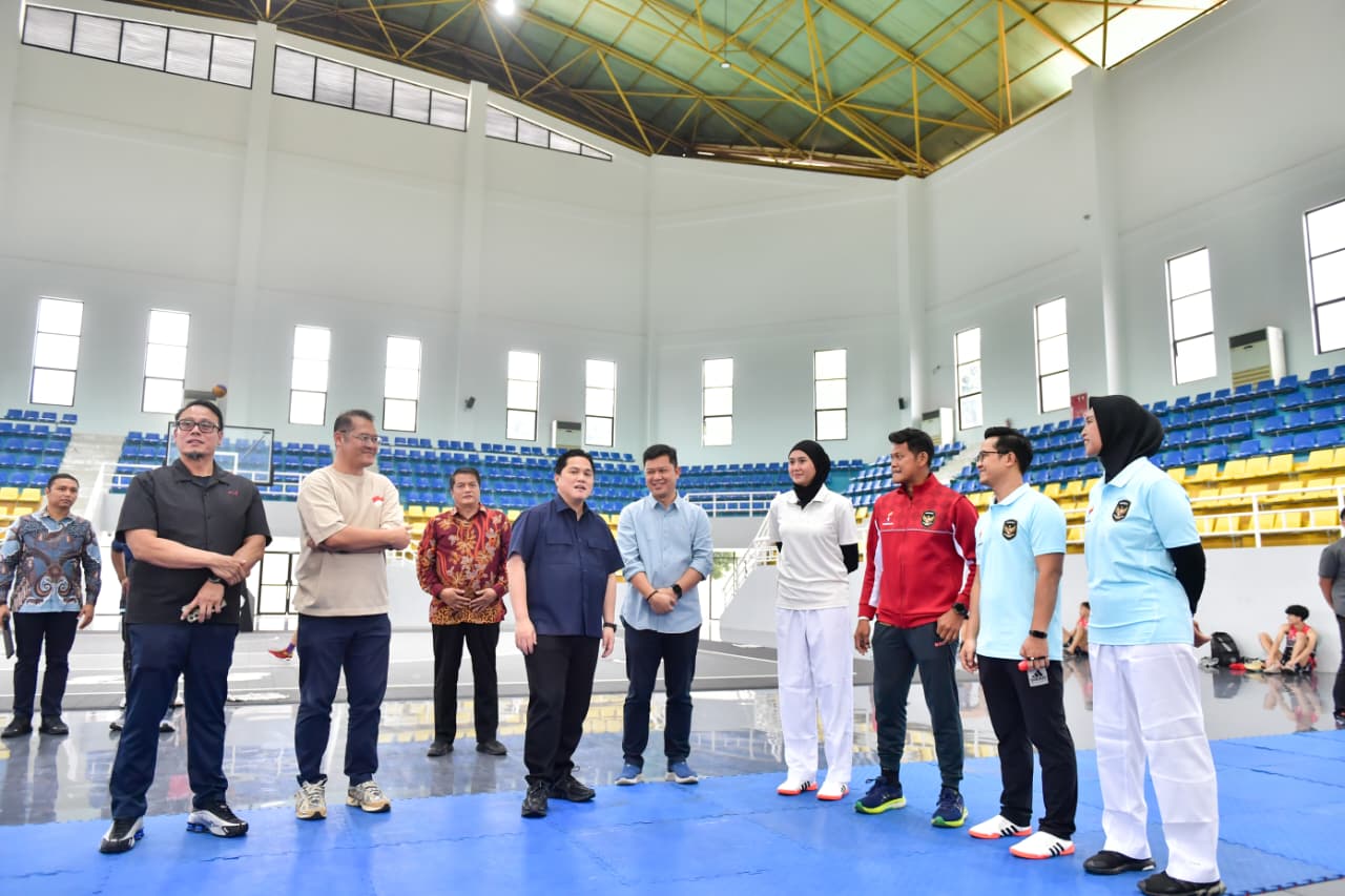 Kemudian, peninjauan beralih ke cabang olahraga karate dan pencak silat. Motivasi yang sama juga disampaikan Menpora Erick kepada atlet-atlet muda yang sedang latihan.